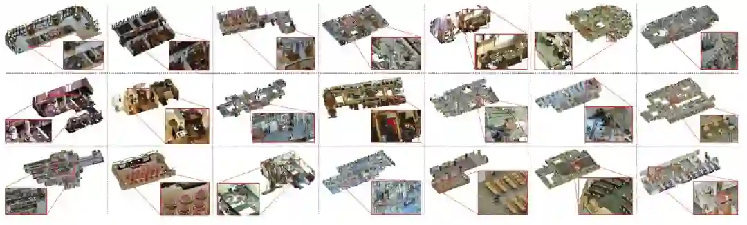 在我们这次的 release 中,我们收集并开源了 572 个建筑物(1440 层)的扫描。作为现有最大的数据集,我们比同类数据集(例如 matterport3D)大一个数量级。