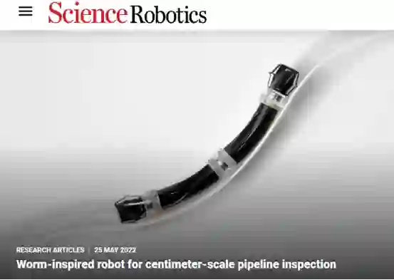 上述科研成果以“用于亚厘米级管状环境导航的管道检测机器人”(A pipeline inspection robot for navigating tubular environments in the sub-centimeter scale)为题发表在《科学・机器人》(Science Robotics)上。