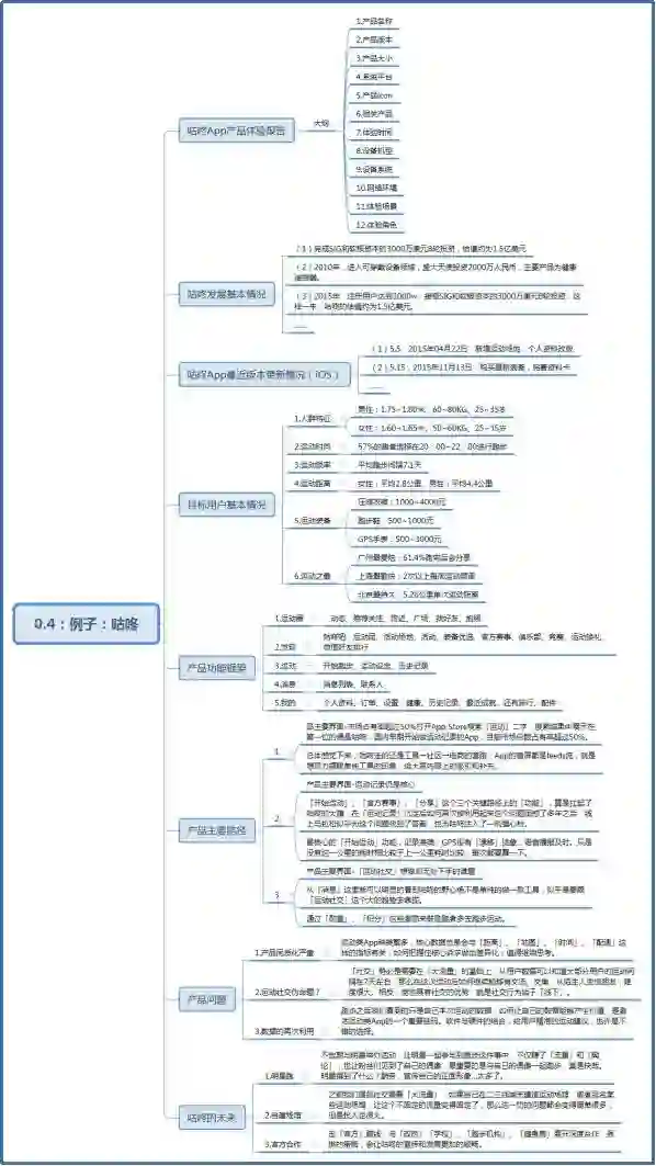 该环节,LiSten老师以咕咚App产品体验报告为案例从基本情况、最近版本更新情况、目标用户基本情况、产品功能框架、产品主要路径、产品问题、咕咚的未来等方向展开分析: