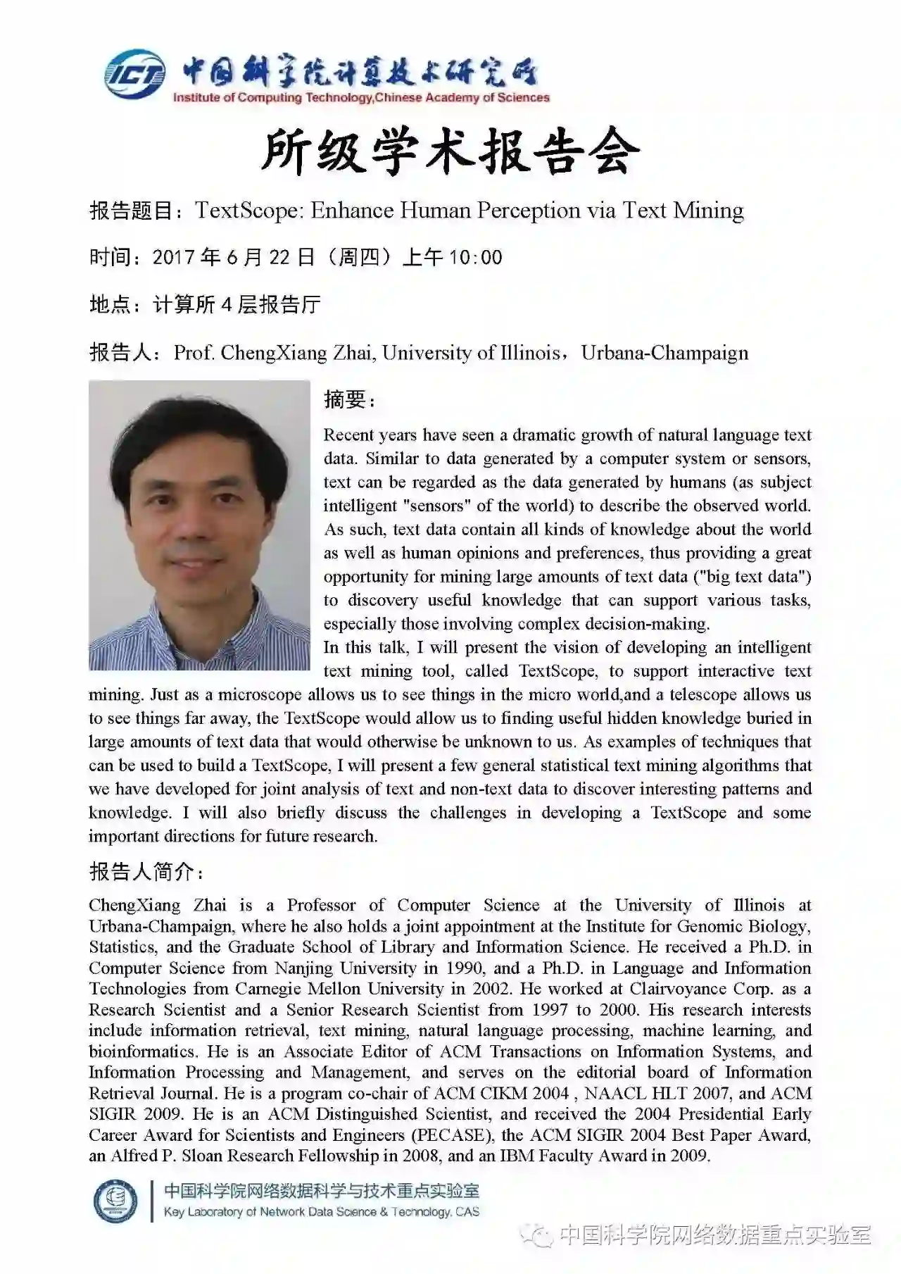 报告人:Prof. ChengXiang Zhai, University of Illinois,Urbana-Champaign