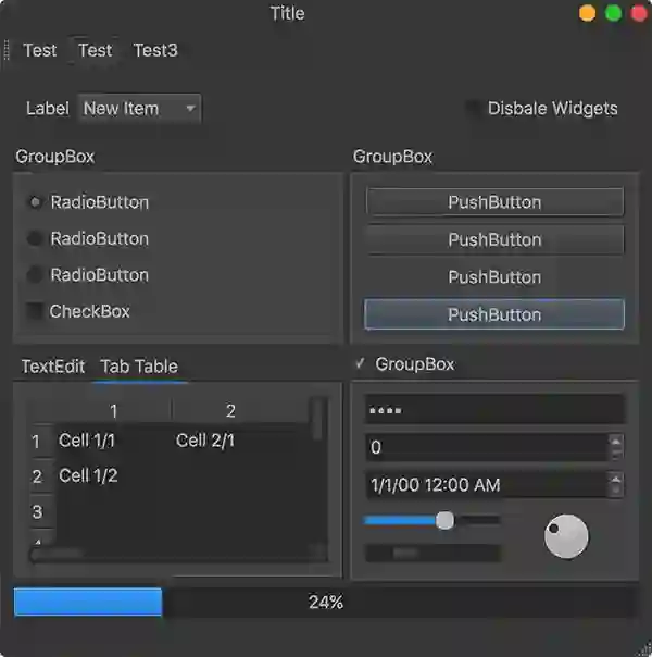 qtmodern是一个Python包,它旨在使PyQt/PySide应用程序更加美观并且在多个平台一致。它提供了一个自定义的无框窗体和一个黑色主题。为了与多个Python QT包装兼容,它采用了QtPy。最初的想法来自于https://github.com/Jorgen-VikingGod/Qt-Frameless-Window-DarkStyle。