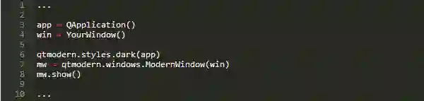 为了使用qtmodern,只需将你想要的样式应用到应用程序,然后创建ModernWindow把你想modernize的窗体括起来: