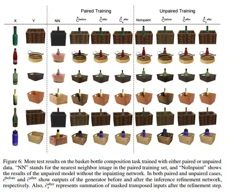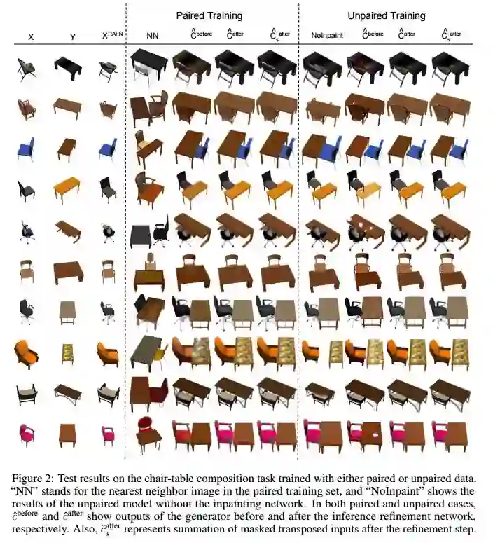 生成对抗性网络(GANs)可以产生复杂而真实的图像,但通常是从单个潜在源中抽取样本,而忽略了可能存在于一个场景中的多个实体之间的显式空间交互。捕捉世界上不同对象之间的这种复杂交互,包括它们的相对缩放、空间布局、遮挡或视点转换是一个具有挑战性的问题。在本工作中,作者提出将GAN框架中的对象组合建模为一个self-consistent 的组合分解网络。模型以目标图像为条件,通过它们的边缘分布,通过显式学习可能的相互作用,从它们的联合分布中生成真实的图像。在训练过程中,通过定性实验和用户评价,给出了单个目标图像和联合场景的配对或未配对实例,结果表明,该模型以合理的方式捕捉了两个输入对象域之间的潜在交互,以合理的方式输出合成场景的新实例。