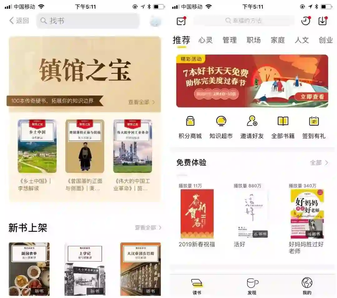 所有邀请来的好友还能免费体验全场100本书的音视频精华解读(体验期7天),这个活动包含了明显的“利己+利他”属性,用户自然不会抗拒当传播病毒源头。