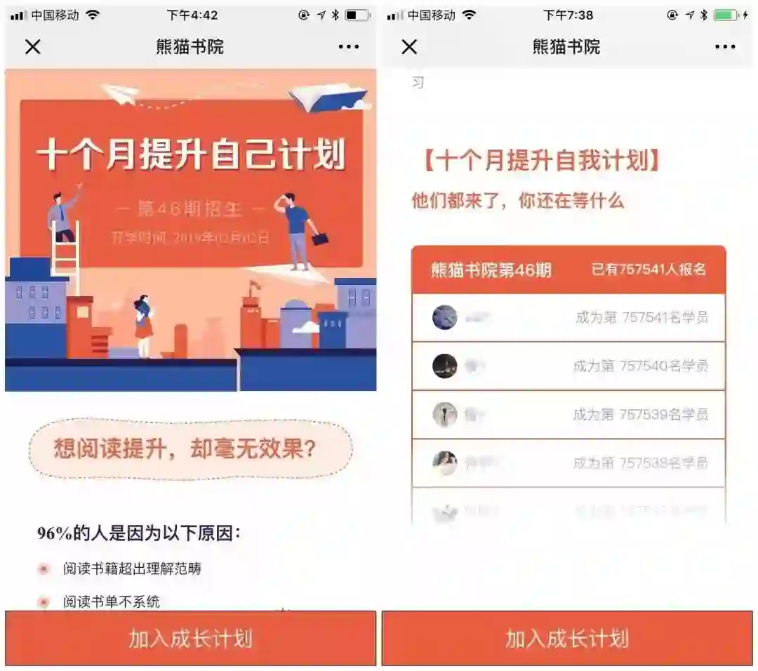读书会和一般的知识付费产品一样,需要一个“爆”点,让人一下子能记住你,而这个“爆”点设计的最好方法就是打造一个活动,或者是设计一个有吸引力的用户体验流程。