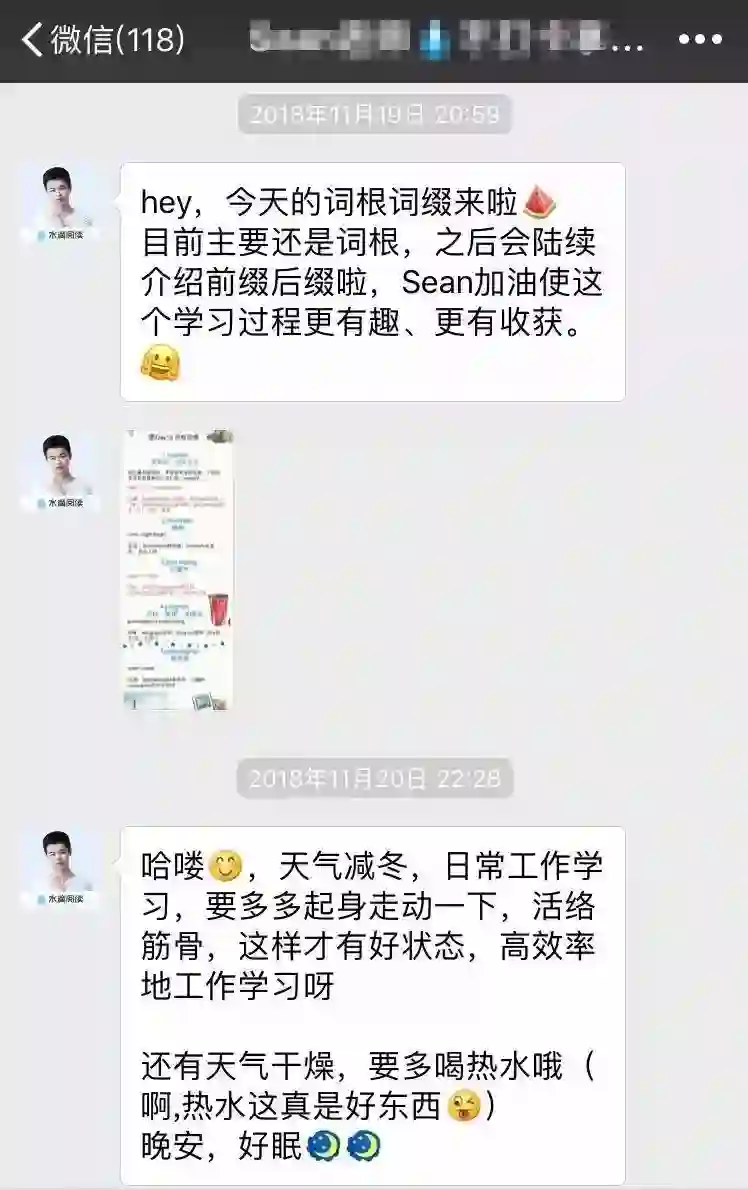 人为的,最显而易见的是微信群里的助教,不断私聊跟进学员学习进度,时不时还会用电影资源和微信红包激励用户,没有高高在上的权威感,就像朋友一样,让人亲近。