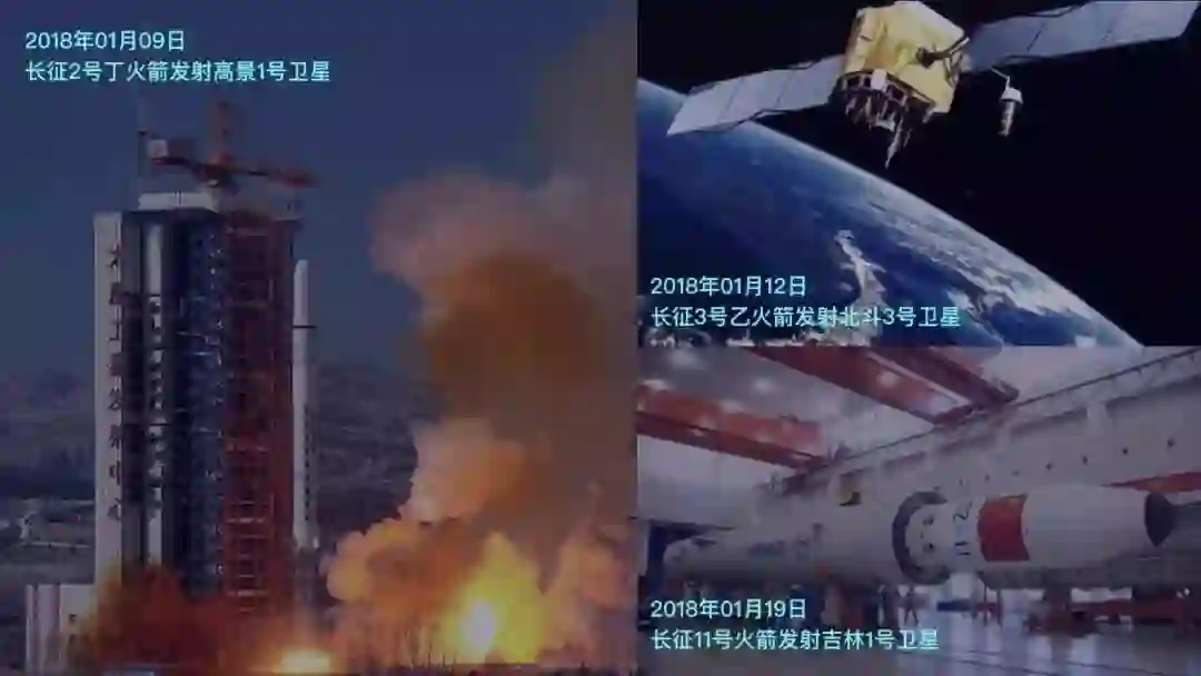 大家看看,2018年伊始我们拉开了一个什么样的序幕。9号长二丁(注:长征二号丁运载火箭)发射,接着是长三乙(注:长征三号乙运载火箭),再是19号的长十一(注:长征十一号运载火箭)。10天里我们发射了3枚火箭。