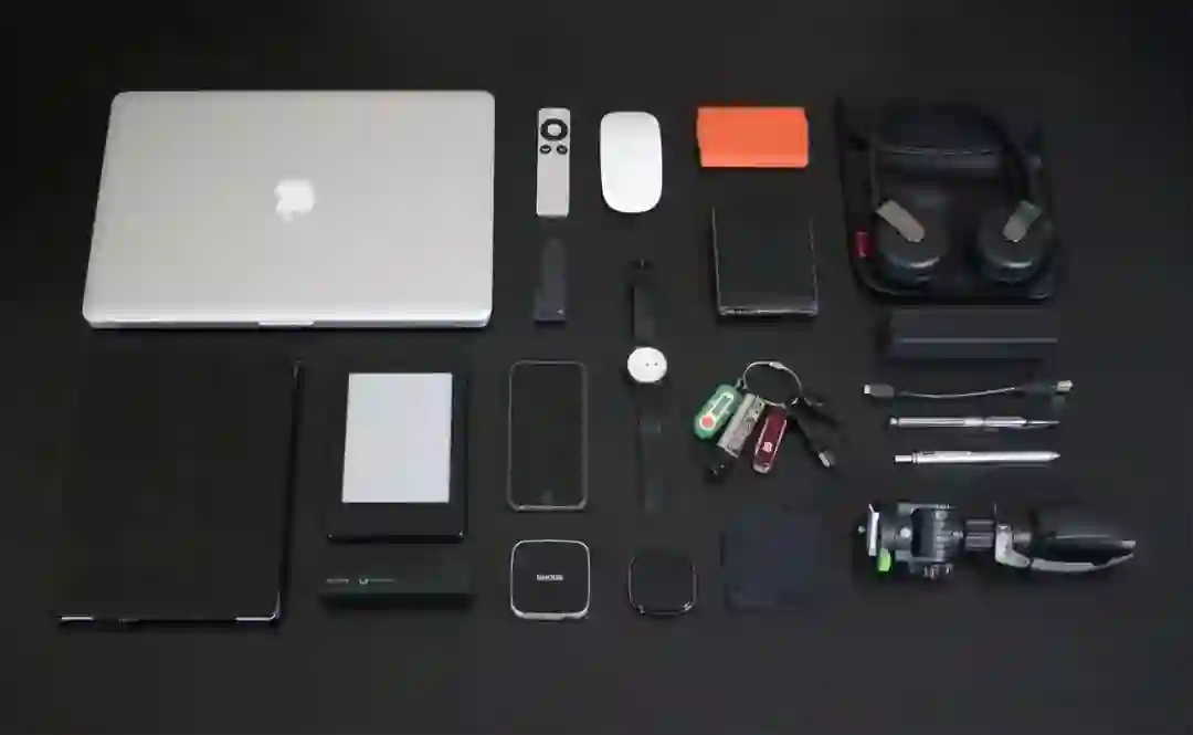笔记本电脑、电源适配器、Kindle、降噪耳机、鼠标……