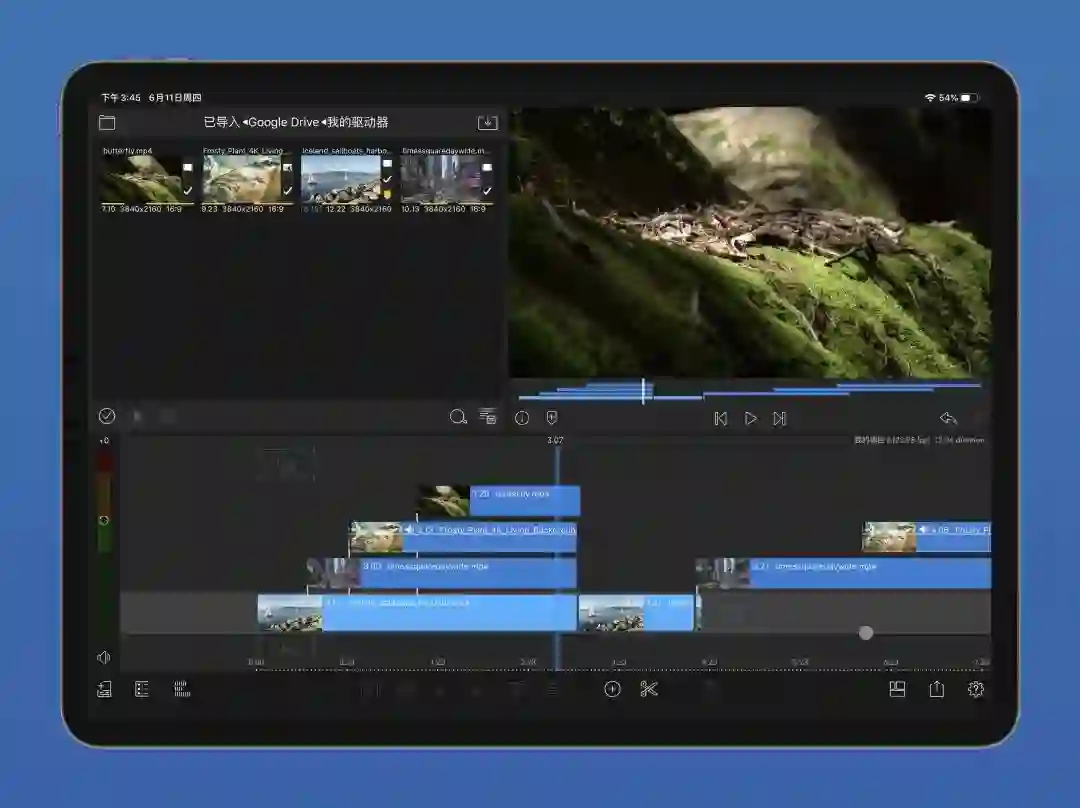 在用它剪辑视频的过程中,可以直接用Apple Pencil或者手指进行拖动,剪辑过程更加直观。