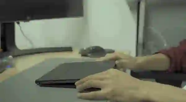 再次推动时,副转轴就会缓缓转动,然后屏幕和键盘背光才会亮起,用Face ID解锁后,随意点击键盘就能进入桌面了。
