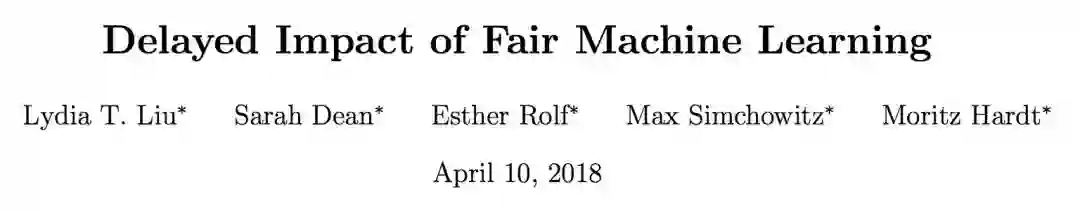 来自 UC Berkeley EECS 的 Lydia T. Liu、Sarah Dean、Esther Rolf、Max Simchowitz 和 Moritz Hardt 的论文同样也获得了最佳论文奖。由于机器学习系统易受到数据偏见而导致歧视性行为,人们认为有必要在某些应用场景中用公平性准则约束系统的行为,并期待其能保护弱势群体和带来长期收益。该研究探索了静态公平性准则的长期影响,发现结果和人们的期望相去甚远。