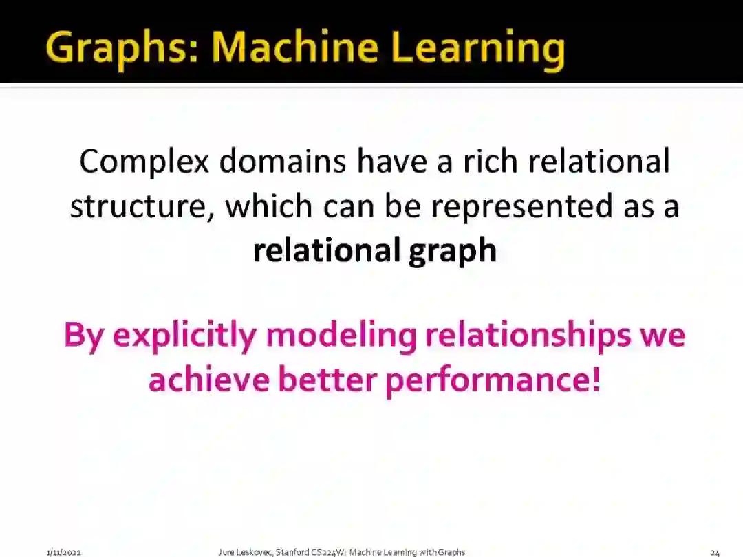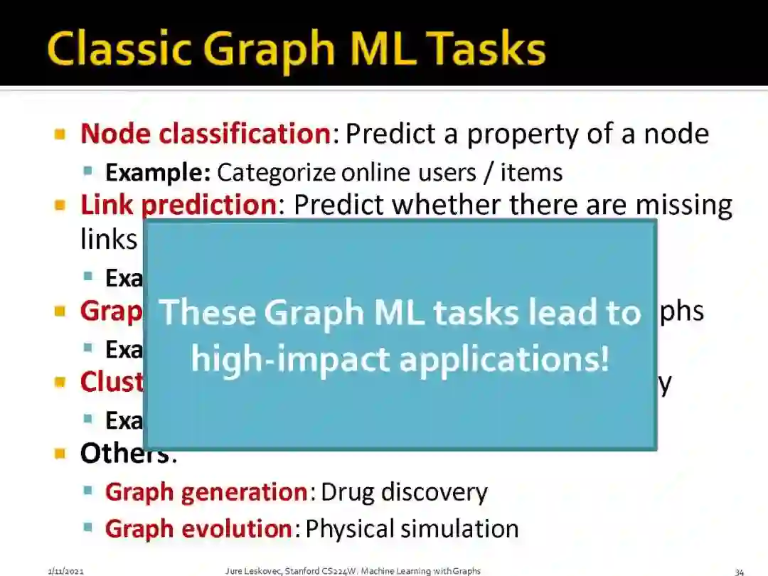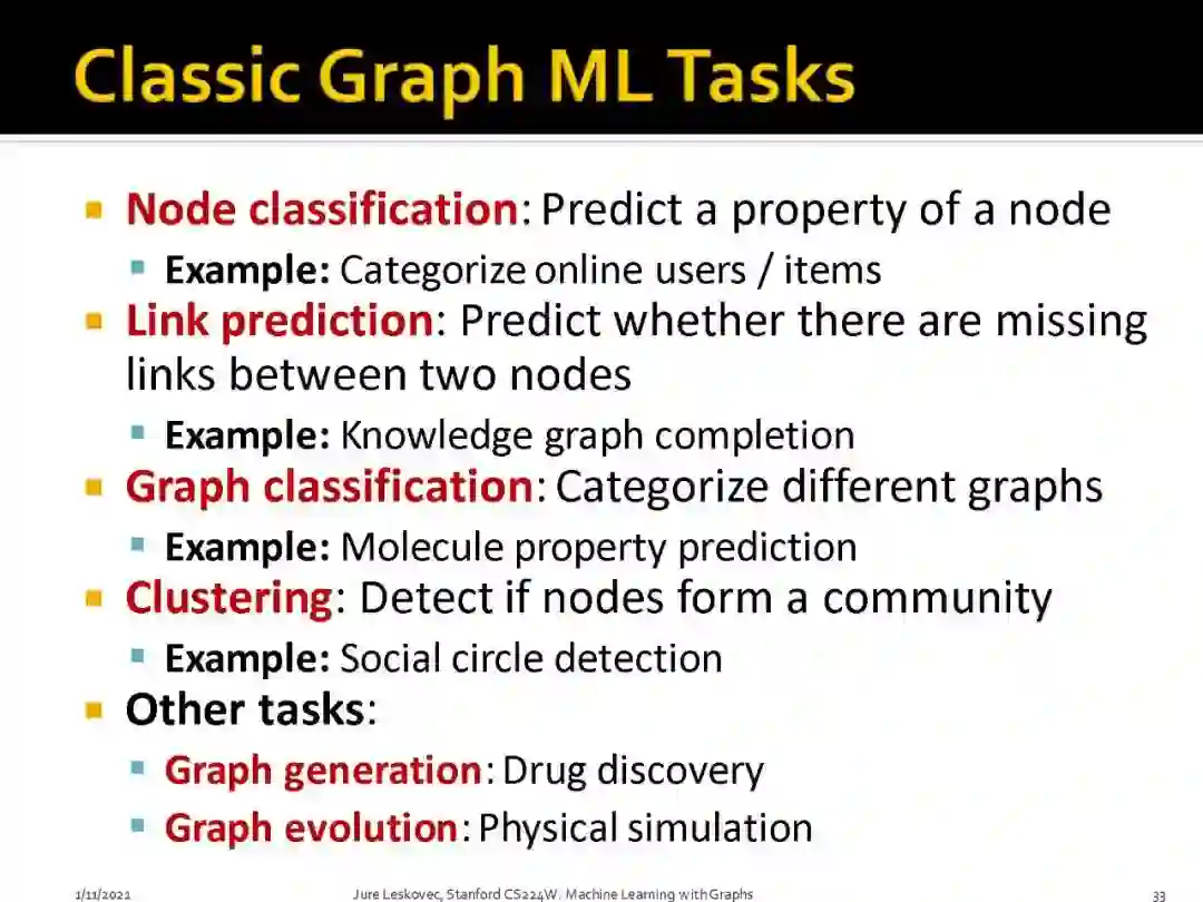 【导读】本文为大家带来了一份斯坦福大学的最新课程CS224W——图机器学习,主讲人是斯坦福大牛Jure Leskovec,他是斯坦福大学计算机学院的副教授,也是图表示学习方法 node2vec 和 GraphSAGE 作者之一。