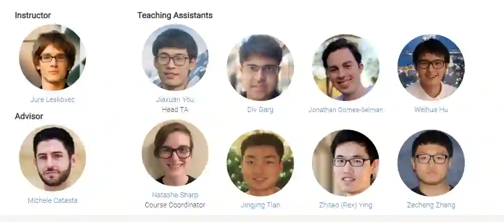 主讲人是图网络领域的大牛Jure Leskovec,是斯坦福大学计算机学院的副教授,也是图表示学习方法 node2vec 和 GraphSAGE 作者之一。在谷歌学术搜索(Google Scholar)上,Jure拥有接近4.5万的论文引用数量,H指数为84。