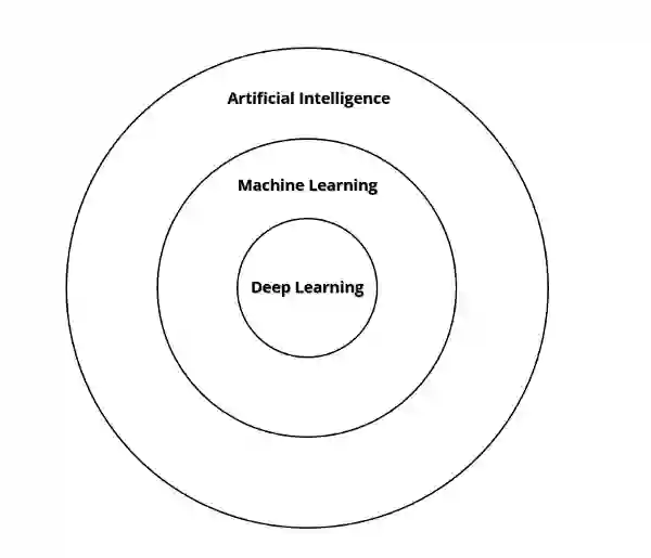 我们可以把这三个术语想象成三个同心圆,其中人工智能包含了机器学习,机器学习又包含了深度学习。