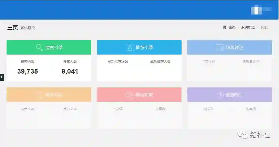 据悉,这款大数据平台中对应了其常提供的六种技术服务:搜索引擎、推荐引擎、垃圾评论、黄反审核、微信抓取和数据统计。每一种功能都可以看到详细的用户行为分析。这些功能,给企业的产品运营人员提供了数据支持,辅助他们做出更好的运营决策。