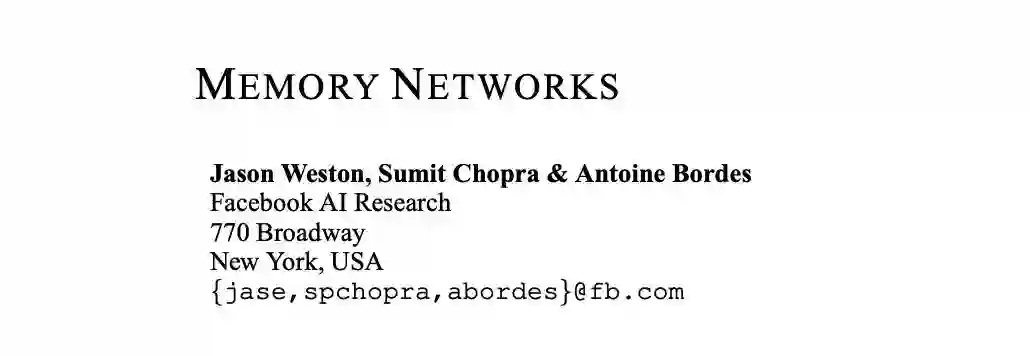 提名Memory Networks原文链接:https://arxiv.org/pdf/1410.3916.pdf