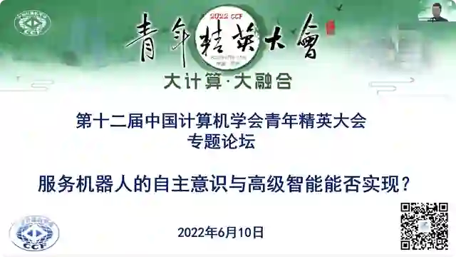 CCF YEF 2022于2022年6月9-11日在北京、苏州等城市线上线下联动举办,期间举办了“服务机器人的自主意识与高级智能能否实现?”专题论坛。