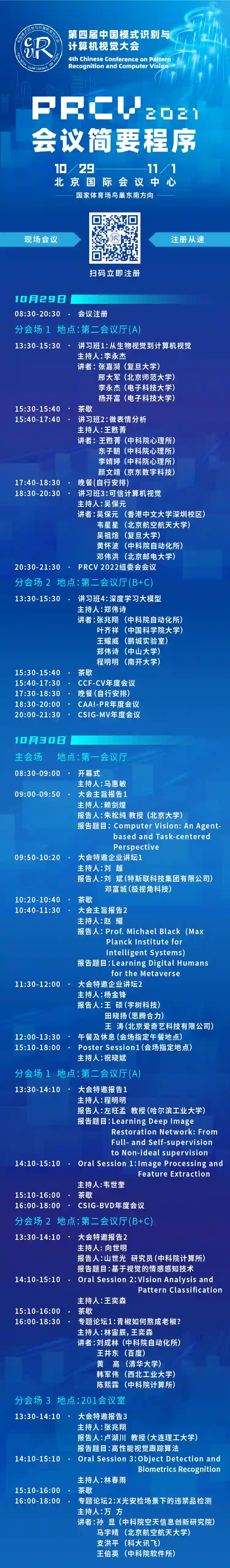 第四届中国模式识别与计算机视觉大会(PRCV2021)将于2021年10月29日至11月1日在北京国际会议中心举行。