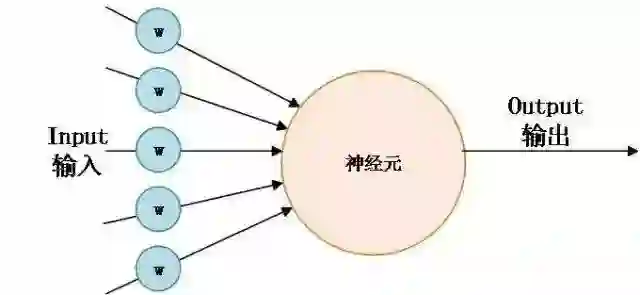 接着,简单介绍下神经网络的基础。生物的大脑是由许多神经细胞组成,同样,模拟大脑的人工神经网络ANN是由许多叫做人工神经细胞(Artificial neuron,也称人工神经原,或人工神经元)的细小结构模块组成。人工神经细胞就像真实神经细胞的一个简化版,如图所示,左边几个蓝色圆中所标字母w代表浮点数,称为权重(weight,或权值,权数)。进入人工神经细胞的每一个input(输入)都与一个权重w相联系,正是这些权重将决定神经网络的整体活跃性。你现在暂时可以设想所有这些权重都被设置到了-1和1之间的一个随机小数。因为权重可正可负,故能对与它关联的输入施加不同的影响,如果权重为正,就会有激发(excitory)作用,权重为负,则会有抑制(inhibitory)作用。当输入信号进入神经细胞时,它们的值将与它们对应的权重相乘,作为图中大圆的输入。大圆的‘核’是一个函数,叫激励函数(activation function),它把所有这些新的、经过权重调整后的输入全部加起来,形成单个的激励值(activation value)。激励值也是一浮点数,且同样可正可负。然后,再根据激励值来产生函数的输出也即神经细胞的输出:如果激励值超过某个阀值(作为例子我们假设阀值为1.0),就会产生一个值为1的信号输出;如果激励值小于阀值1.0,则输出一个0。这是人工神经细胞激励函数的一种最简单的类型。