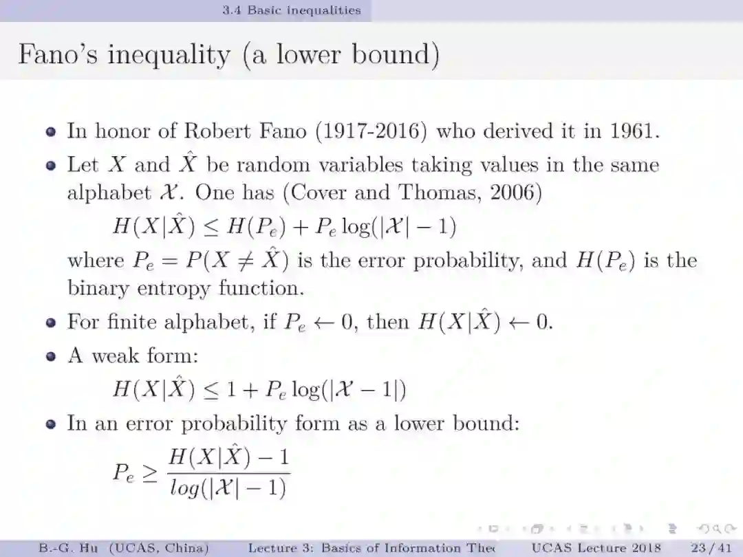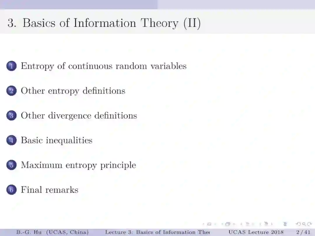 国科大UCAS胡包钢教授《信息论与机器学习》课程第二讲:信息论基础一
