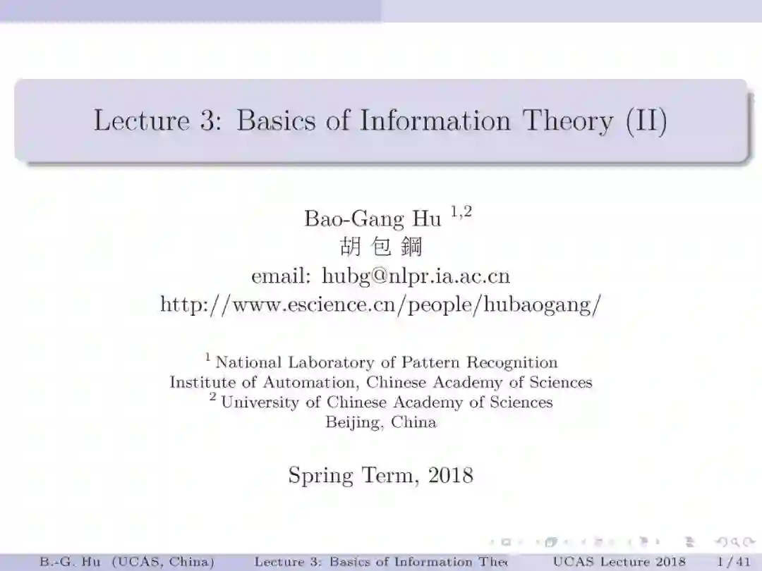 国科大UCAS《信息论与机器学习》课程,中国科学院自动化研究所胡包钢研究员