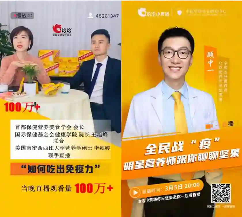 此外,洽洽入局直播领域并非只是这次单纯押宝在“红人流量”,此前开展的国家级专业营养师的直播更多的是从产品角度向消费者传达健康饮食理念。