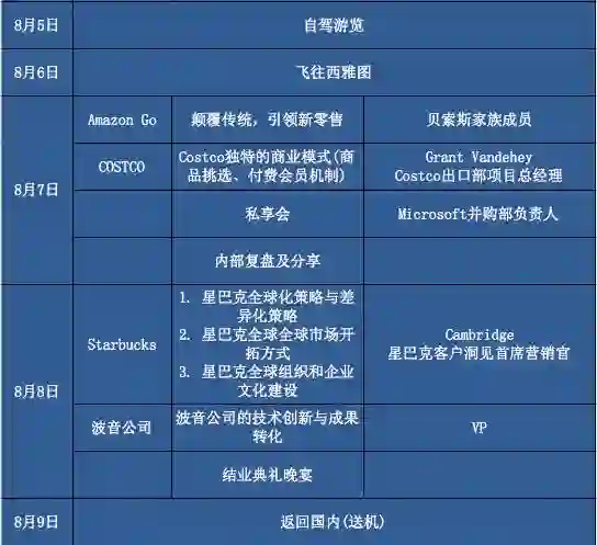 引领新零售的AmazonGo、拥有独特商业模式的Costco、全球化战略布局的星巴克……对新模式的学习等也是本次游学的亮点。