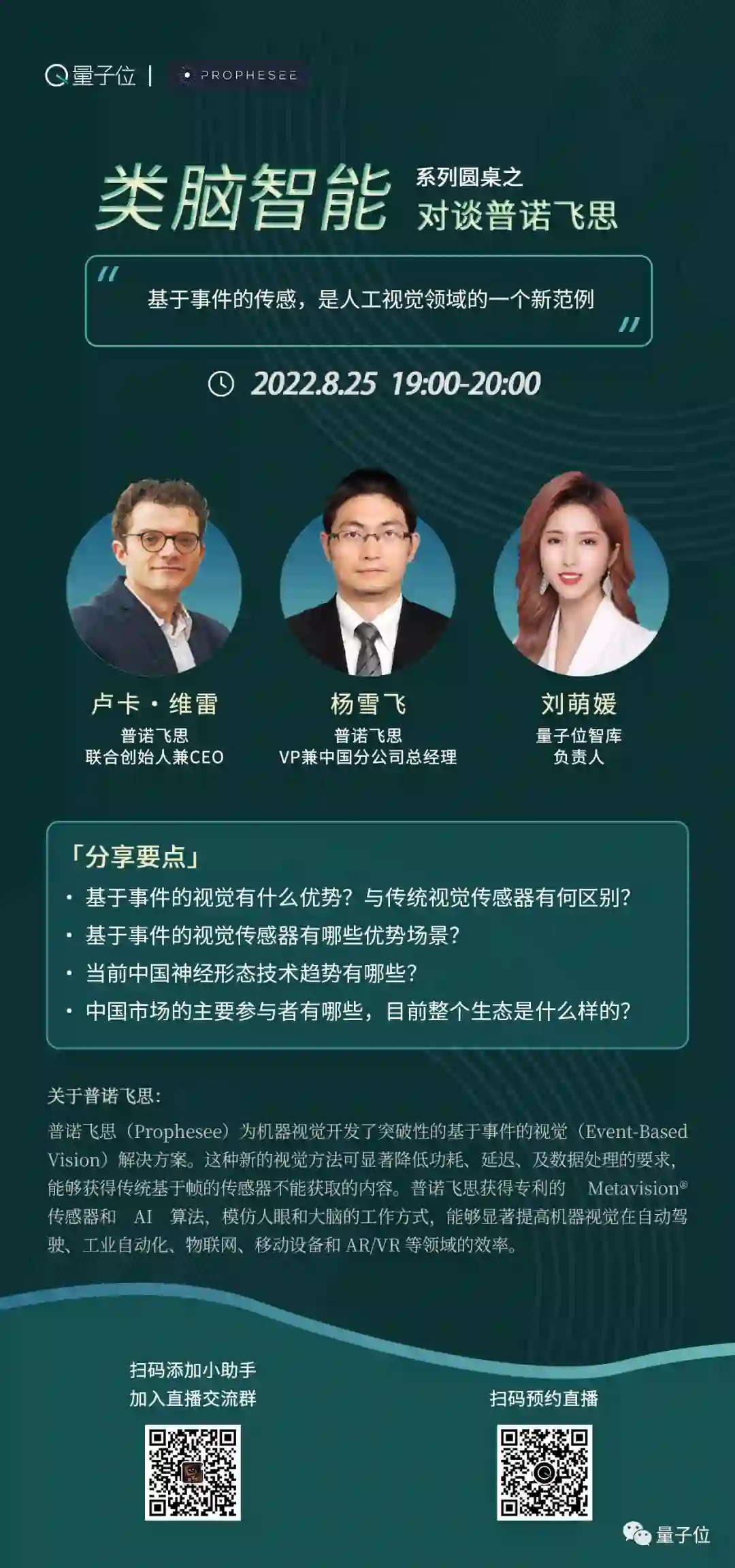8月25日晚7点,“类脑智能”系列对谈节目第三期「量子位·对撞派」邀请到了普诺飞思,将由普诺飞思的创始人兼CEO Luca 与普诺飞思VP兼中国分公司总经理杨雪飞为我们分享~