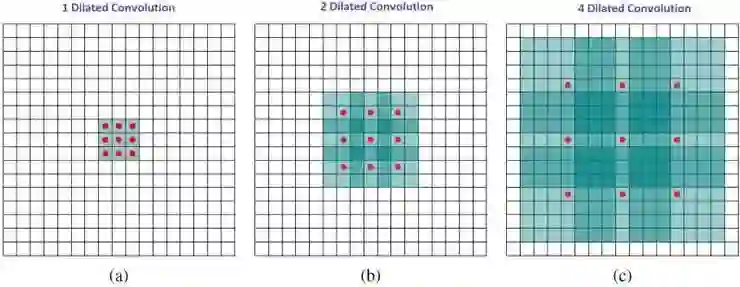 《通过空洞卷积做多规模的上下文聚合》的论文作者在多层空洞卷积以外创建了一个网络,其中的空洞率 l 每层都以指数级的方式增长。结果,当参数数量每层仅有直线式的增长时,有效的感受野实现了指数型的增长。