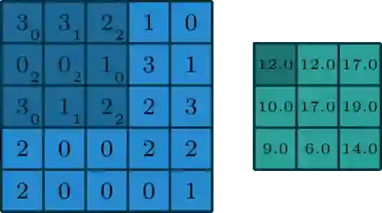 下图表示使用卷积核大小为 3、步长为 1;填充为 1 的 2D 卷积: