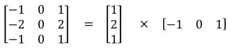 一个卷积核为 3x3 的 Sobel 卷积核拆分成了一个 3x1 卷积核和一个 1x3 卷积核