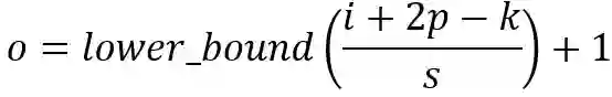 对于一个大小为 i、卷积核大小为 k、填充为 p 以及卷积步长为 s 的输入图像,经过卷积的输出图像的大小为 o: