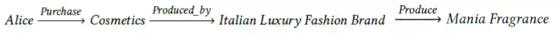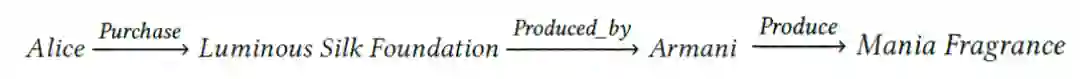 这条路径指出,用户 Alice 购买了由 Armani 生产的 Luminous Silk Foundation,因此模型推荐了同为 Armani 生产的 Mania Fragrance 给这位用户。