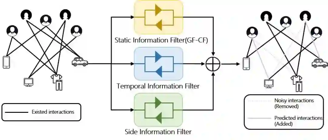 本文提出的 FIRE 是一个无参数的模型,不需要非常耗时的训练过程,因此在模型更新阶段具有非常高的效率。此外,借助图信号处理技术,研究员们还为 FIRE 设计了两个低通滤波器:时间信息滤波器和辅助信息滤波器,用于提升推荐结果的准确性。时间信息滤波器通过对用户交互数据进行指数衰减,用来捕捉用户随时间变化的偏好,而辅助信息滤波器则将辅助信息(如用户特征、物品属性)建模为用户或物品间的相似度信息,用于剔除存在于推荐结果的异常信息。这两个滤波器都实现了过滤用户交互信号中的高频分量保留低频分量的效果,使得用户交互信号更加平滑,从而保证推荐内容的准确和可靠。实验证明,FIRE 在保持高准确性推荐结果的同时,有着非常高的训练效率。