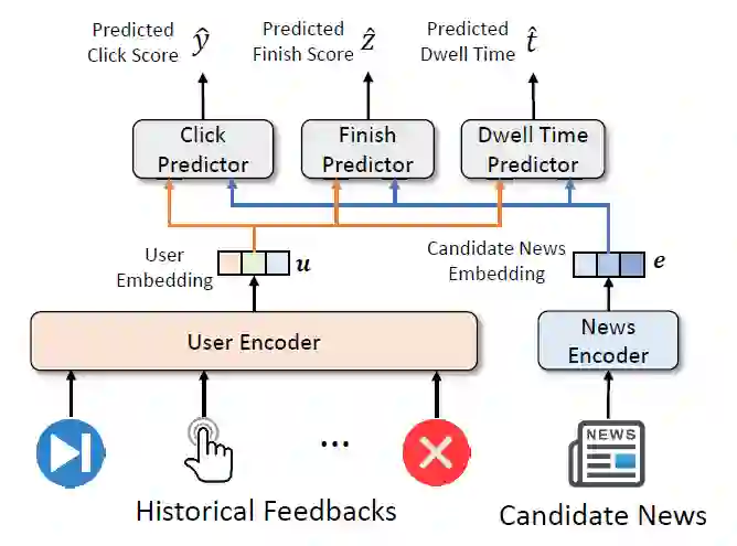 用户兴趣的准确建模是个性化新闻推荐的核心。大部分已有的新闻推荐方法都依赖于用户点击等隐式反馈来推断用户的兴趣和训练推荐模型。然而用户的点击行为往往十分嘈杂,并且难以反映用户对新闻内容的真实喜好。同时,仅仅优化点击率的推荐模型也难以有效优化用户黏性等指标。