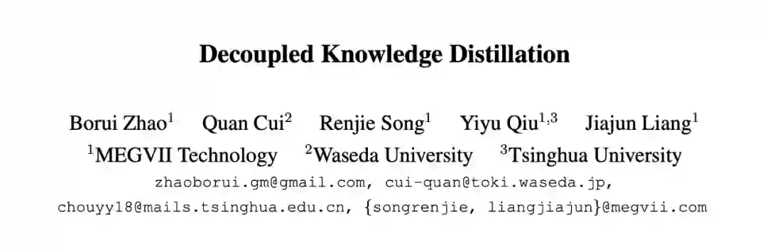 近年来顶会的 SOTA 蒸馏方法多基于 CNN 的中间层特征,而基于输出 logits 的方法被严重忽视了。饮水思源,本文中来自旷视科技 (Megvii)、早稻田大学、清华大学的研究者将研究重心放回到 logits 蒸馏上,对 7 年前 Hinton 提出的知识蒸馏方法(Knowledge Distillation,下文简称 KD)[1] 进行了解耦和分析,发现了一些限制 KD 性能的重要因素,进而提出了一种新的方法「解耦知识蒸馏」(Decoupled Knowledge Distillation,下文简称 DKD)[2],使得 logits 蒸馏重回 SOTA 行列。