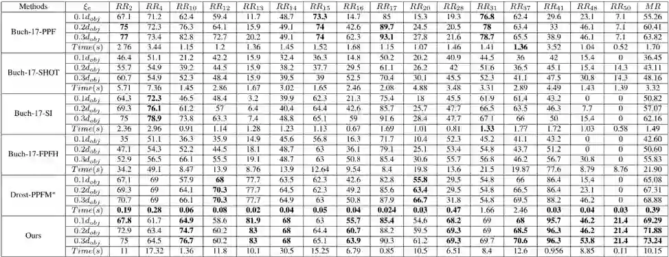 实验结果:本文在UWA、Toshiba CAD和DTU等多个公开数据集上做了定量和定性对比试验,并取得了最优性能。