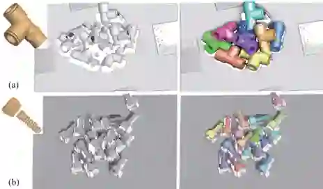 6D姿态估计在场景三维定位、机器人3D无序抓取、虚拟现实和增强现实等领域有广泛应用。早期工作主要集中在以特征描述子建立目标对象与场景实例之间的对应关系生成目标实例的位姿,但是这种方法的通用性和鲁棒性较差,难以满足对象表面特征分辨力低时的位姿估计需求。近期,涌现一些基于深度学习的位姿估计新方法,然而由于6D位姿估计训练数据标注难度大、硬件设备要求高和自监督深度学习算法预测精度低等原因限制了其在工业领域的应用。