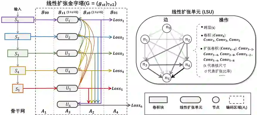 图 1 自适应线性扩张网络方法的结构搜索空间图示。