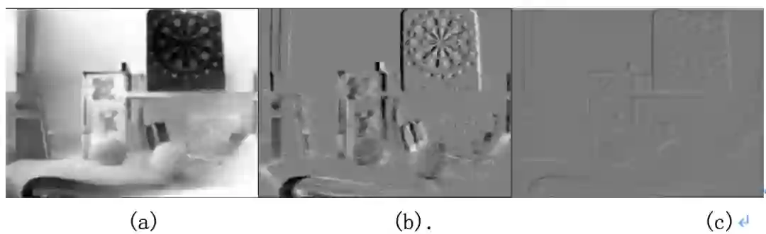 图 2 图(a)是重建图像,图(b)是事件相机生成的图像,图 (c) 是Sobel滤波器生成的图像
