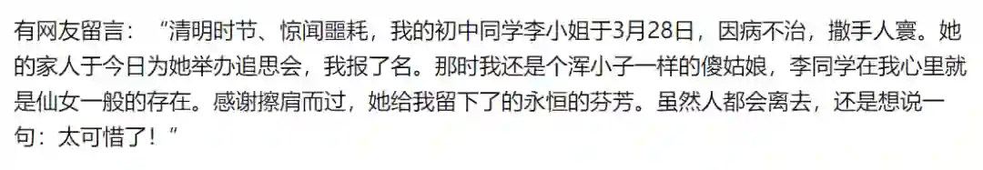 除了身边的人,李昶的初中同学也表达了追忆之情。
