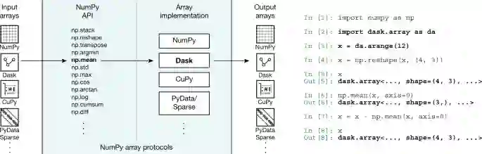 理想情况下,使用 NumPy 函数或语义在专门的数组上进行操作,可以简单地工作,这样用户就可以一次性编写代码,然后在 NumPy 数组、 GPU 数组、分布式数组等适当的数组之间进行切换,非常方便。