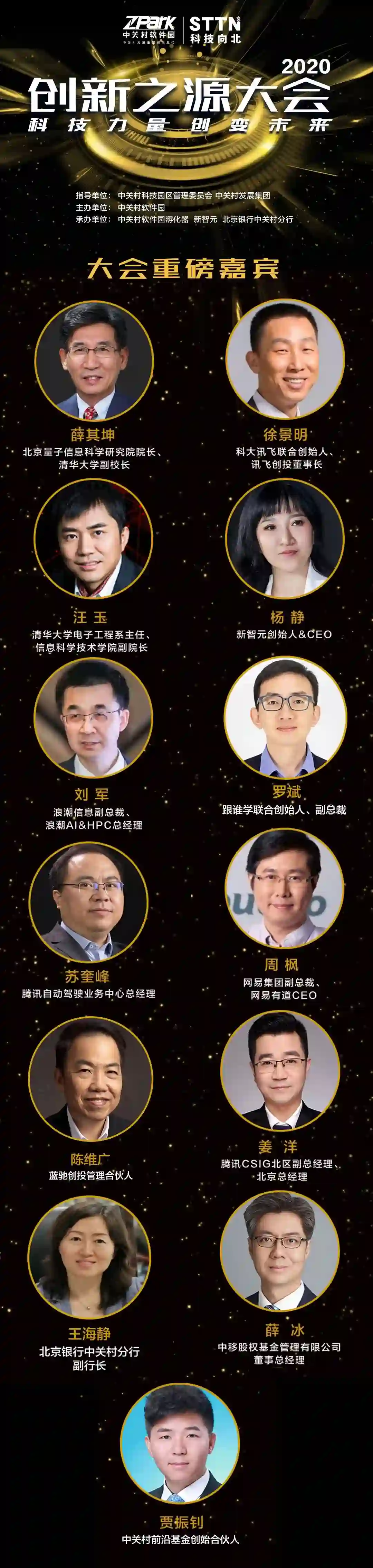 9月22日,2020创新之源大会 —“科技力量创变未来”在中关村软件园国际会议中心召开。大会由中关村软件园主办,中关村软件园孵化器、新智元、北京银行共同承办,邀请到清华大学副校长、北京量子信息科学研究院院长薛其坤院士,清华大学电子工程系主任、信息科学技术学院副院长汪玉,科大讯飞联合创始人、讯飞创投董事长徐景明,搜狗公司CEO王小川,网易集团副总裁、网易有道CEO周枫,达闼科技创始人兼CEO黄晓庆,浪潮信息副总裁、浪潮AI&HPC总经理刘军 ,腾讯自动驾驶业务中心总经理苏奎峰,新智元创始人兼CEO杨静等重磅嘉宾出席。