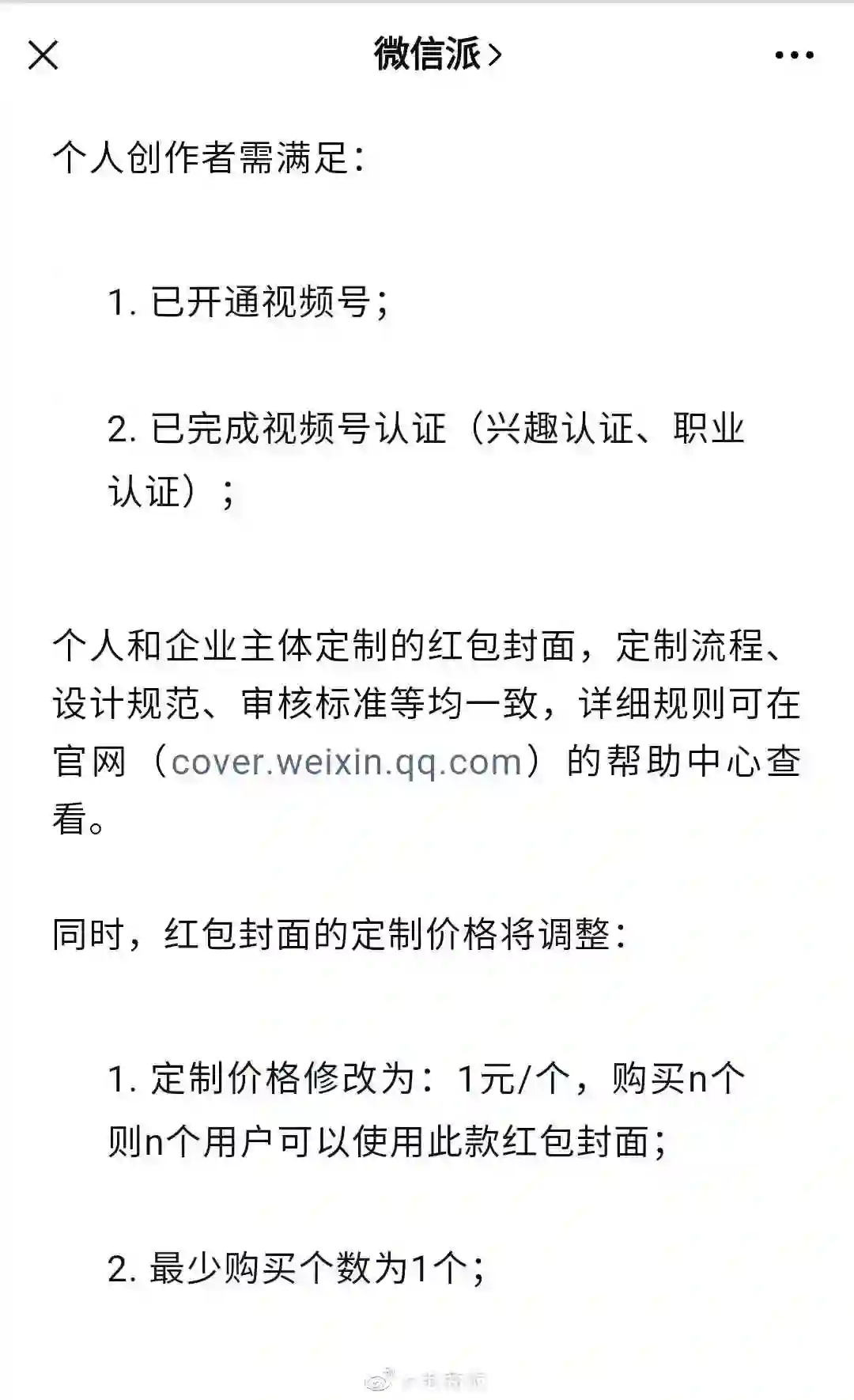 微信红包封面向个人开放,定制价格为1元