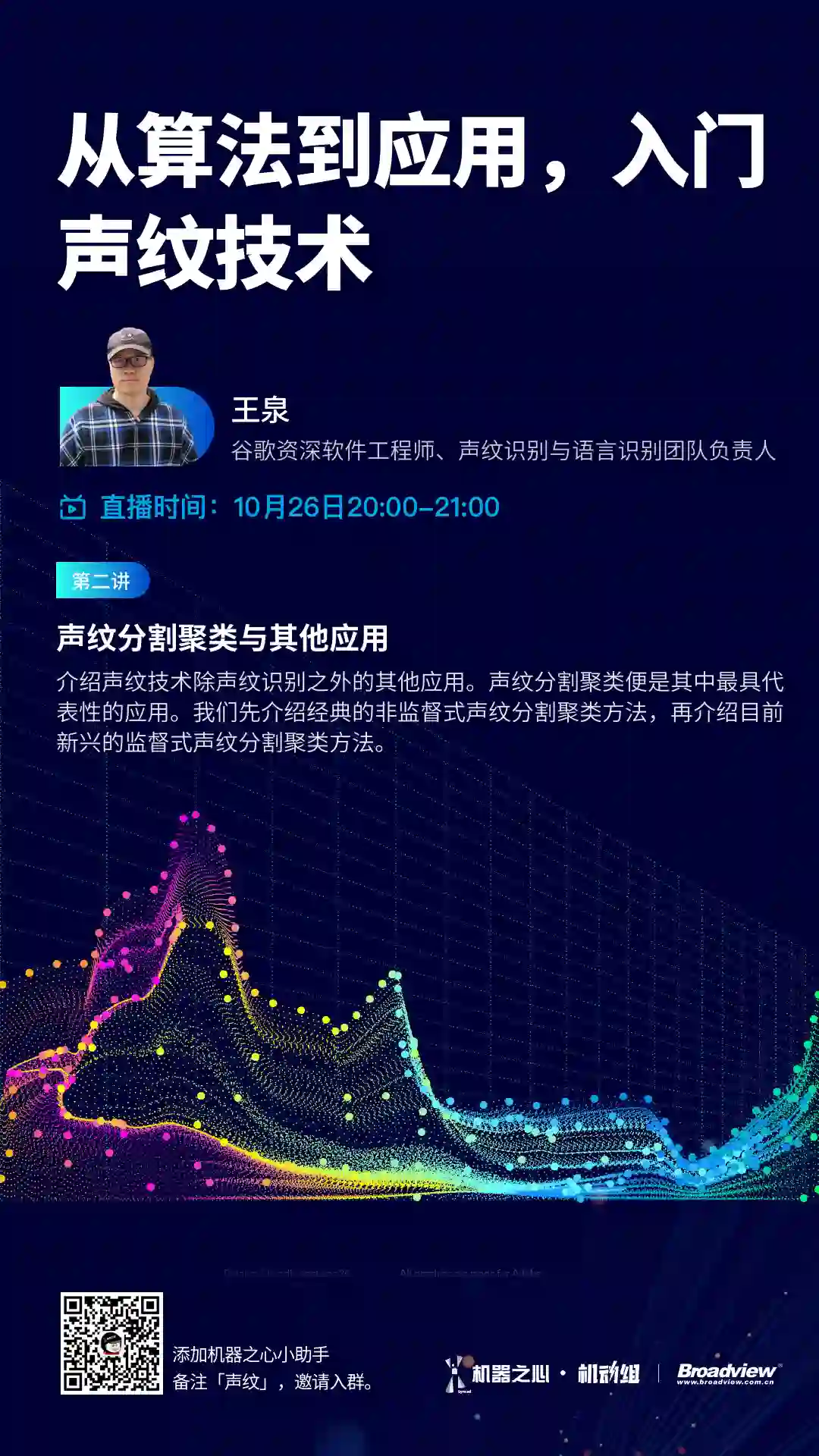 添加机器之心小助手(syncedai5),备注「声纹」,加入本次直播群。