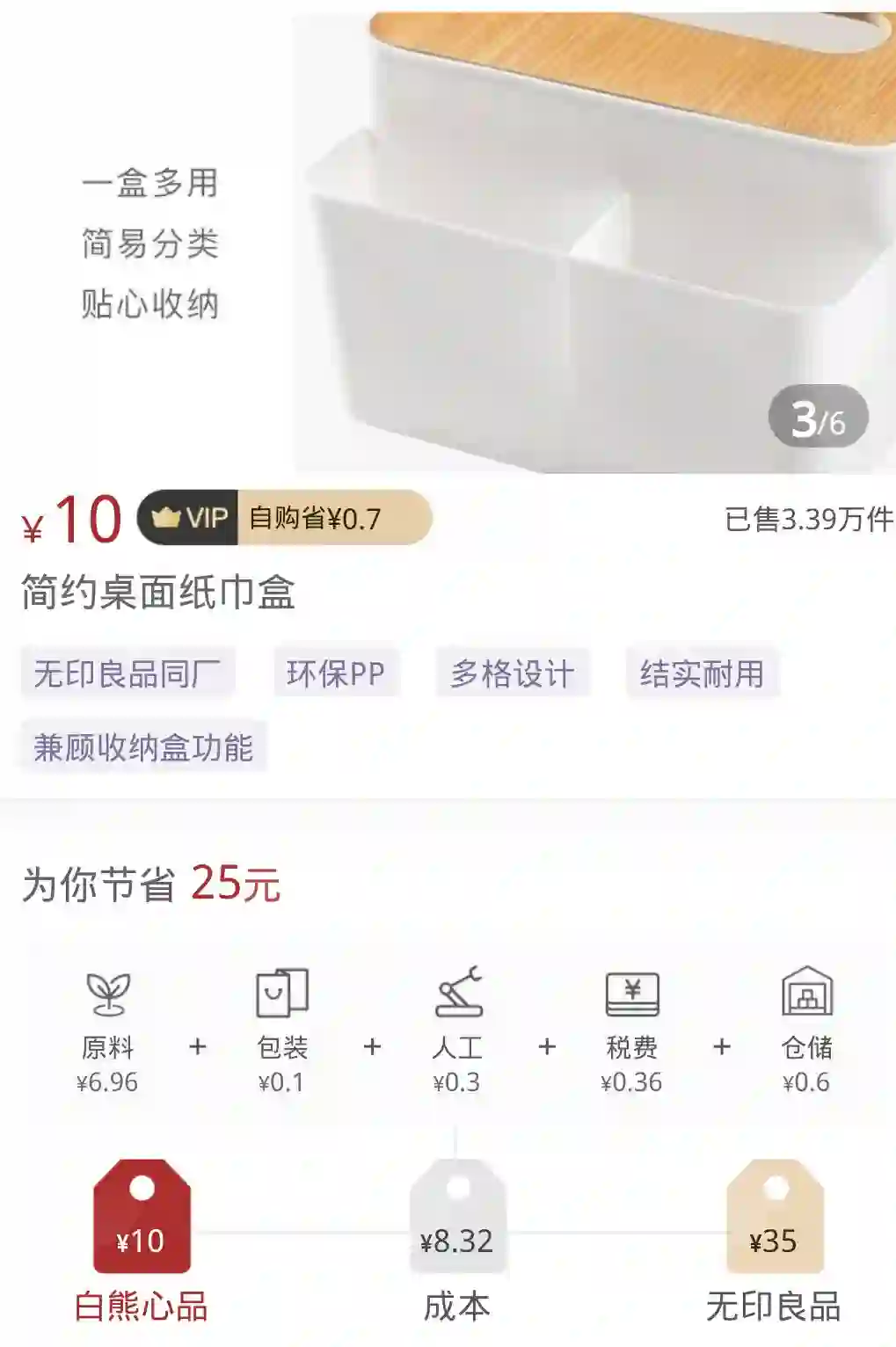 研发上,与名创优品不同,张家炜并不会强调高端日本原创设计,他表示做成无Logo的ODM即可,从源头降低用户在品牌方面的付费。张家炜坦言,所有产品都遵循天然、有机、零添加的用料原则。在张家炜的规划里,平台未来只会上线不到500个品类,每个品类只有1个SKU。