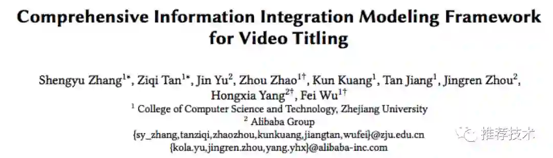 1. Comprehensive Information Integration Modeling Framework for Video Titling,https://arxiv.org/abs/2006.13608