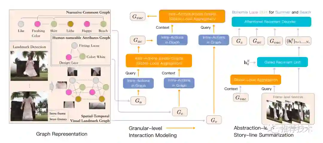 和传统视频描述不同的是,买家秀视频标题生成需要更注重商品细节描述、外观识别描述、背景交互、故事线主题等等元素,其任务本身是和实际应用强关联的。传统视频描述通常会用RNN来建模视频帧序列和文本序列。但是在本文,如果要给商品不同部位之间建立关联、建模商品整体的特点、同时融合三种异构信息(视频、买家评论、商品属性),一个小小的RNN就捉襟见肘了。
