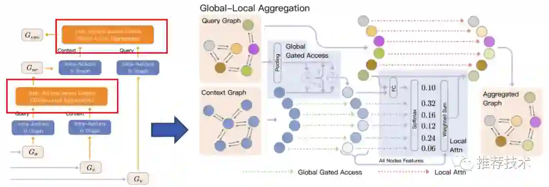 图内关系建模是为了对商品有关的细粒度特征进行识别,图间关系建模是为了对异构图之间的细粒度特征进行关联和聚合。具体地,图间关系建模使用了全局-局部聚合模块GLA,它包含全局门控访问和局部注意两个子模块。