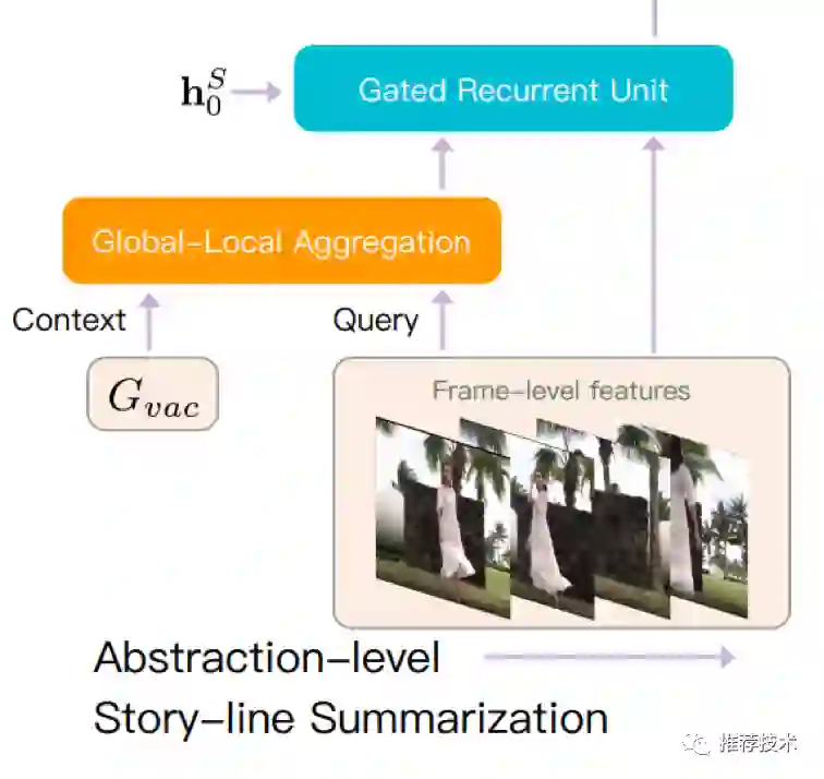 故事线是用RNN来串接的,不过这里除了帧信息外,还融合了上面步骤产出的GLA输出(细粒度信息),作为上下文信息。